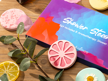 These all-natural shower steamers are made with plant-based ingredients and infused with the energizing, bright aroma of Aofmee's exclusive premium essential oil blend.